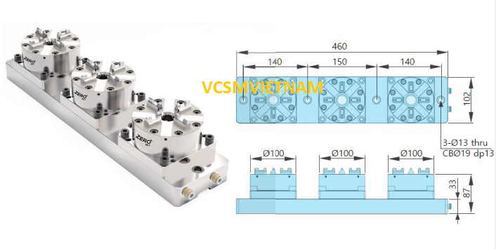Dòng sản phẩm ZRS thường có nhiều phiên bản khác nhau tùy theo kích thước và số lượng vị trí kẹp: