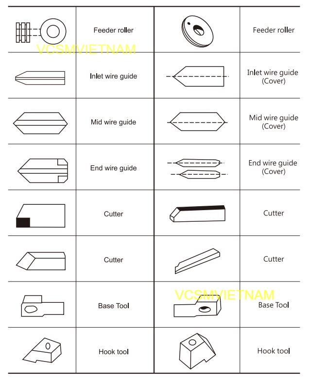 Tùy vào loại máy và quy trình tạo lò xo, các công cụ Carbide thường bao gồm: